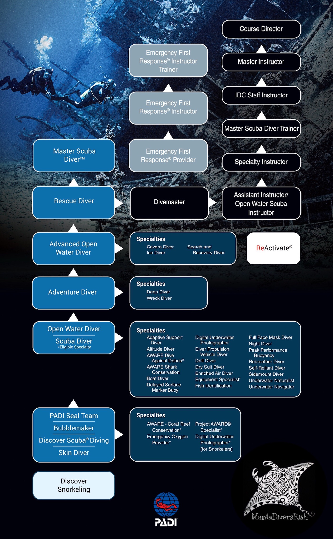 چارت دوره های غواصی