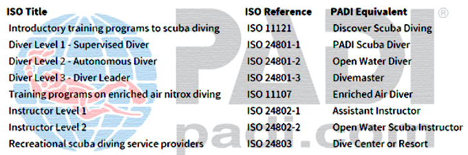 شماره استانداردهای غواصی مطابقت داده شده با پدی